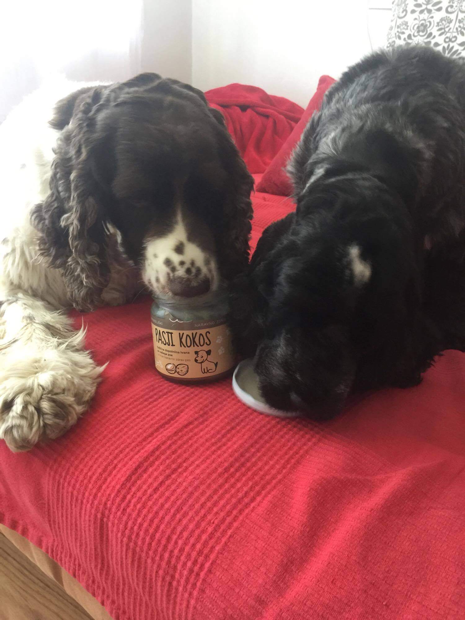 »Naši trije kosmatinci so naravnost navdušeni nad pasjim kokosom. Zdaj že prav poznajo kozarček, v katerem se skriva kokos in vsak večer pridno čakajo vsak na svojo žličko 🙂 Pri nas je zelo pomagal pri odpravi neprijetnega vonja iz gobčka, hkrati pa odlično vpliva tudi na dlako, saj je le ta lepa in sijoča. Priporočamo!«