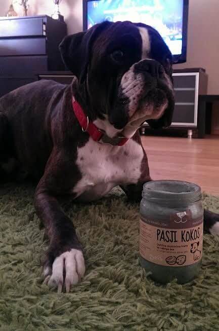 »Pri štiriletni nemški bokserki Naomi smo pasji kokos začeli uporabljati meseca januarja 2017. Po nekaj mesecih uporabe sem poleg tega, da ga obožuje, opazila spremembe na kvaliteti pasje dlake in tudi na koži. V obdobju prehoda iz mrzlih v tople dni se ji je hitreje ustavilo izpadanje dlake, dlaka je lepša, sijoča, na pogled bolj zdrava. Pasji kokos ji dodajam dvakrat tedensko v hrano, tudi v času brejosti, včasih pa ga uporabimo tudi za nego kakšne manjše rane in podobno.«